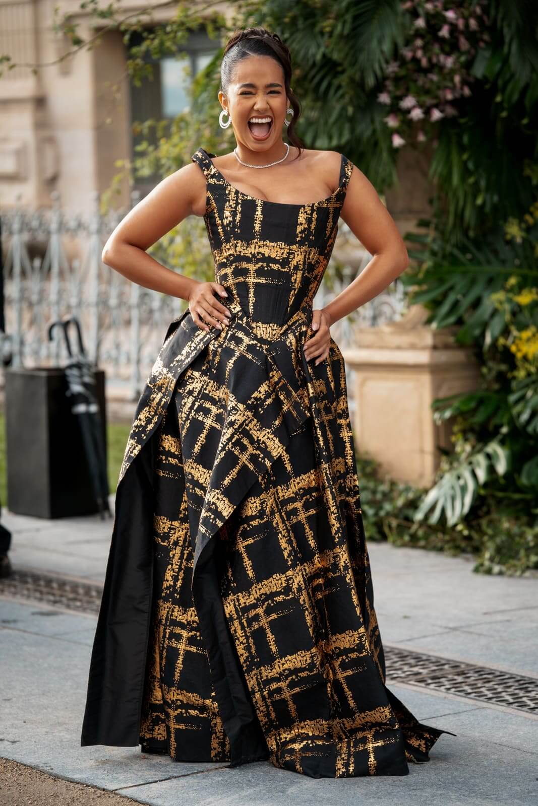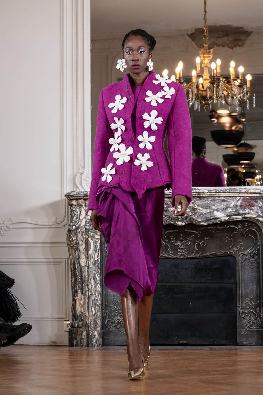 – Imane Ayissi, a Cameroonian designer deeply committed to sustainable fashion. His collection, named “Ikkorok,” was very colorful, featuring many flowers and designs inspired by nature.