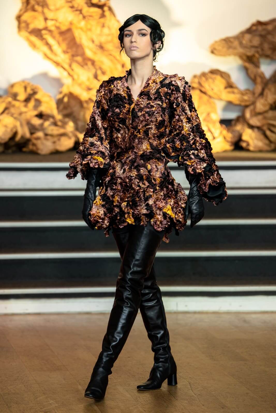 Stéphane Rolland, a French designer celebrated for his luxury creations, staged his show at the Champs-Élysées Theatre. Set to orchestral music, the collection featured striking silhouettes and elegant dresses, creating a flawless presentation.